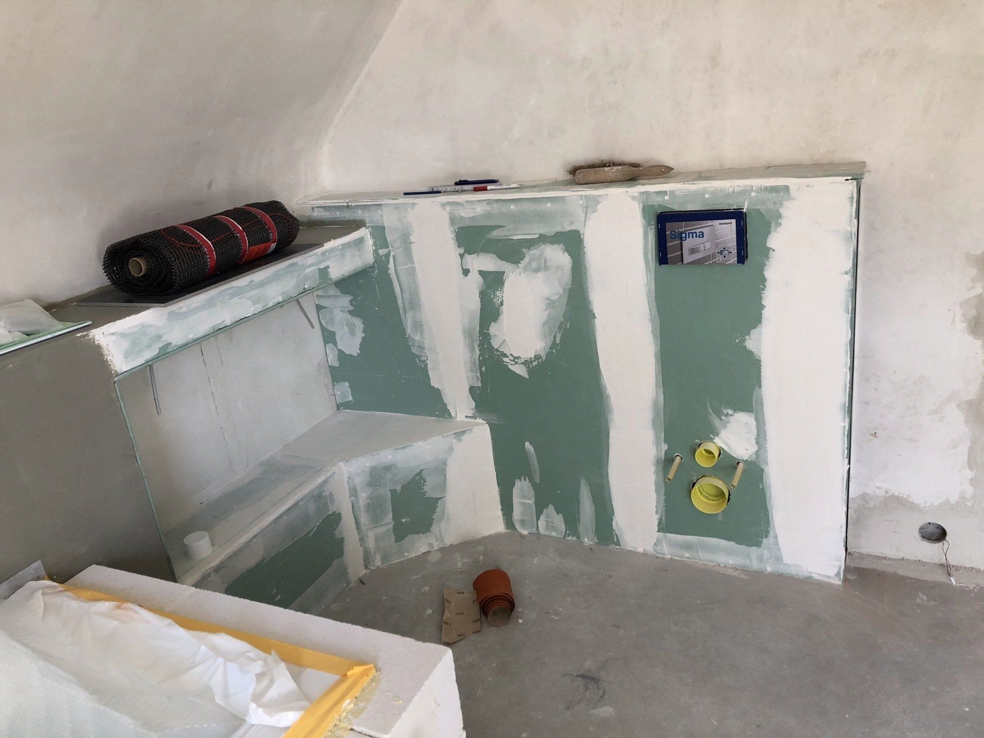 Trockenbau bedeutet das Hochziehen von Wänden oder Wandteilen, ohne dass diese tragend sind. Durch den Trockenbau können Ablagen und Raumtrenner geschaffen werden, die dem Badezimmer einen ganz neuen Komfort verleihen.